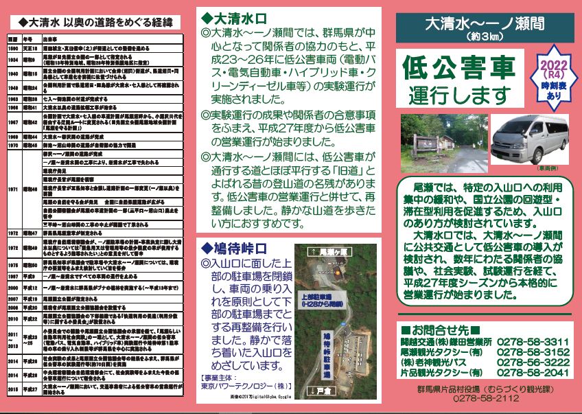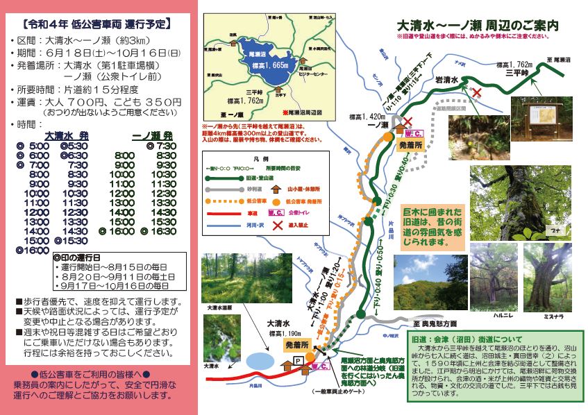 大清水~一ノ瀬間 低公害車運行予定日のお知らせ