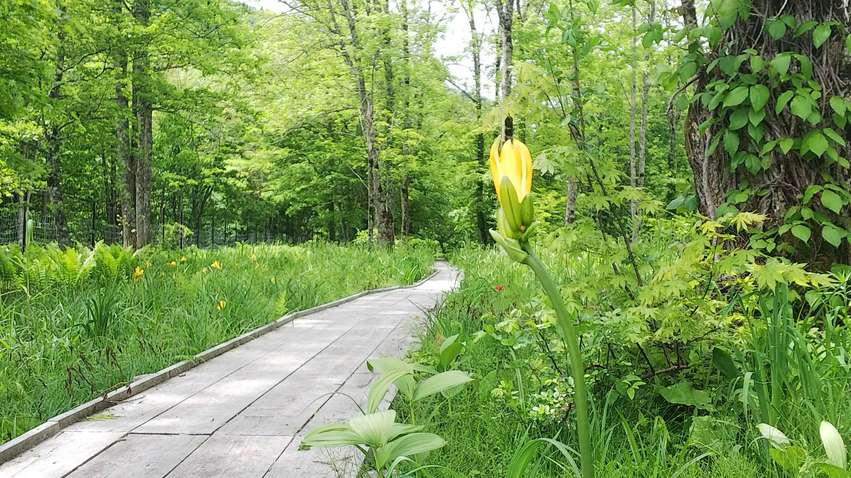 また、低公害車の発着地、大清水口にある大清水湿原では4~6株ほど、ニッコウキスゲが咲いていました。