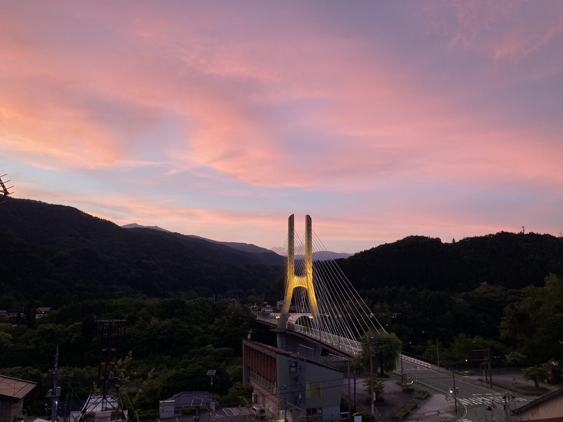 梅雨空の夕焼けがとてもキレイだとお話には聞きますが、昨日は夕焼けに染まり本当にキレイな一瞬でした。