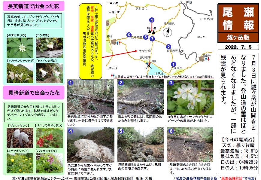 ※ナデッ窪は管理者のいない登山道です。雪崩・滑落・遭難等の危険があるため、残雪期の通行は控えてください。