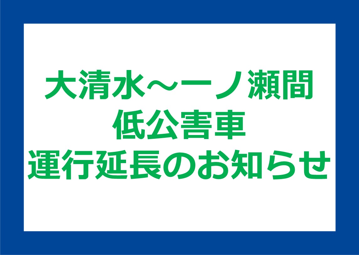 大清水~一ノ瀬間の低公害車運行が10月16日(日)までの予定でしたが、10月23日(日)まで延長となりましたので、お知らせさせていただきます。