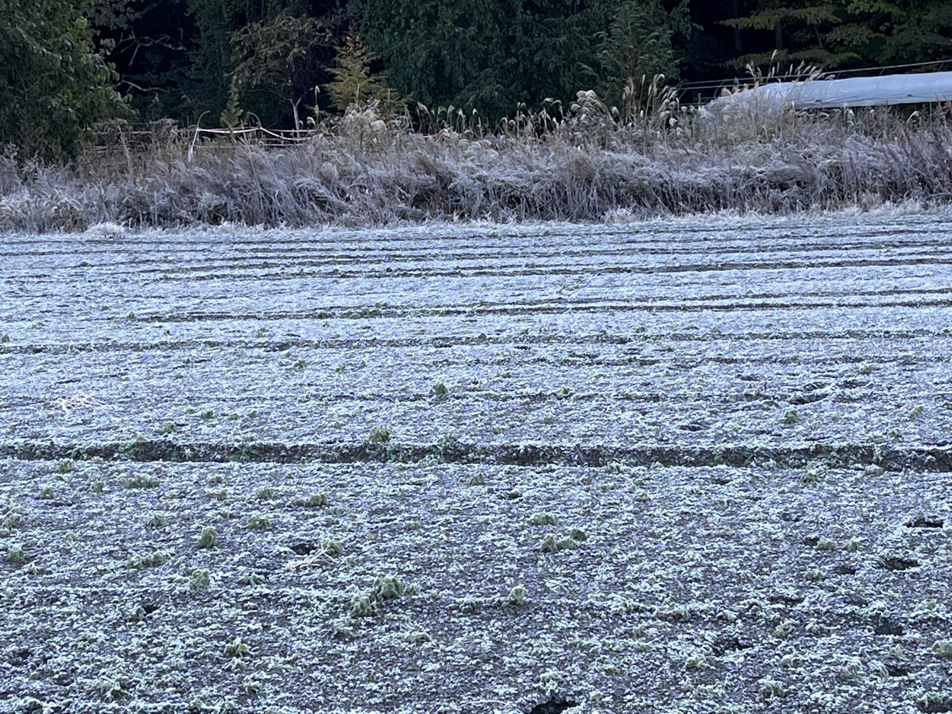 今朝はマイナス3℃とだいぶ冷え込み、辺りは霜で真っ白でした。