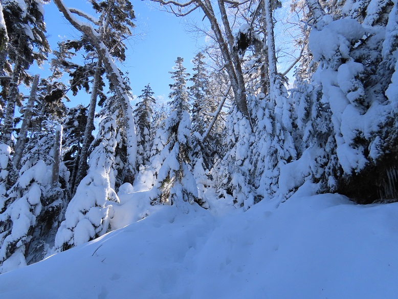 先日の降雪で弥陀ヶ池より上は例年以上の積雪深く、踏み跡が無い時は股下までのラッセル状態もあります。