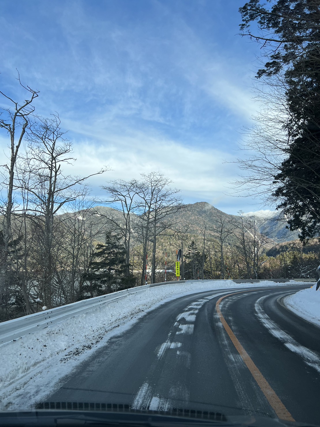 丸沼高原スキー場より金精トンネルまでの間、朝晩は凍結箇所もあり、日中も日陰には雪が残っています。ノーマルタイヤでは大変危険です。