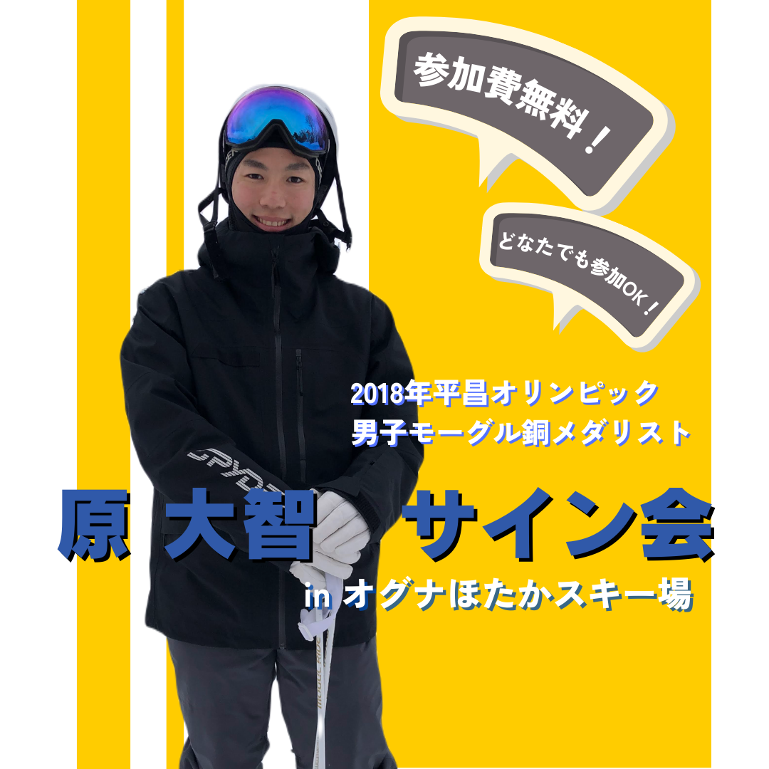 あす 1月14日(土)15:00~15:30 オグナほたかスキー場 センターハウス1F入口において 2018年平昌オリンピック 男子モーグル銅メダリスト『原 大智 サイン会』を行います!