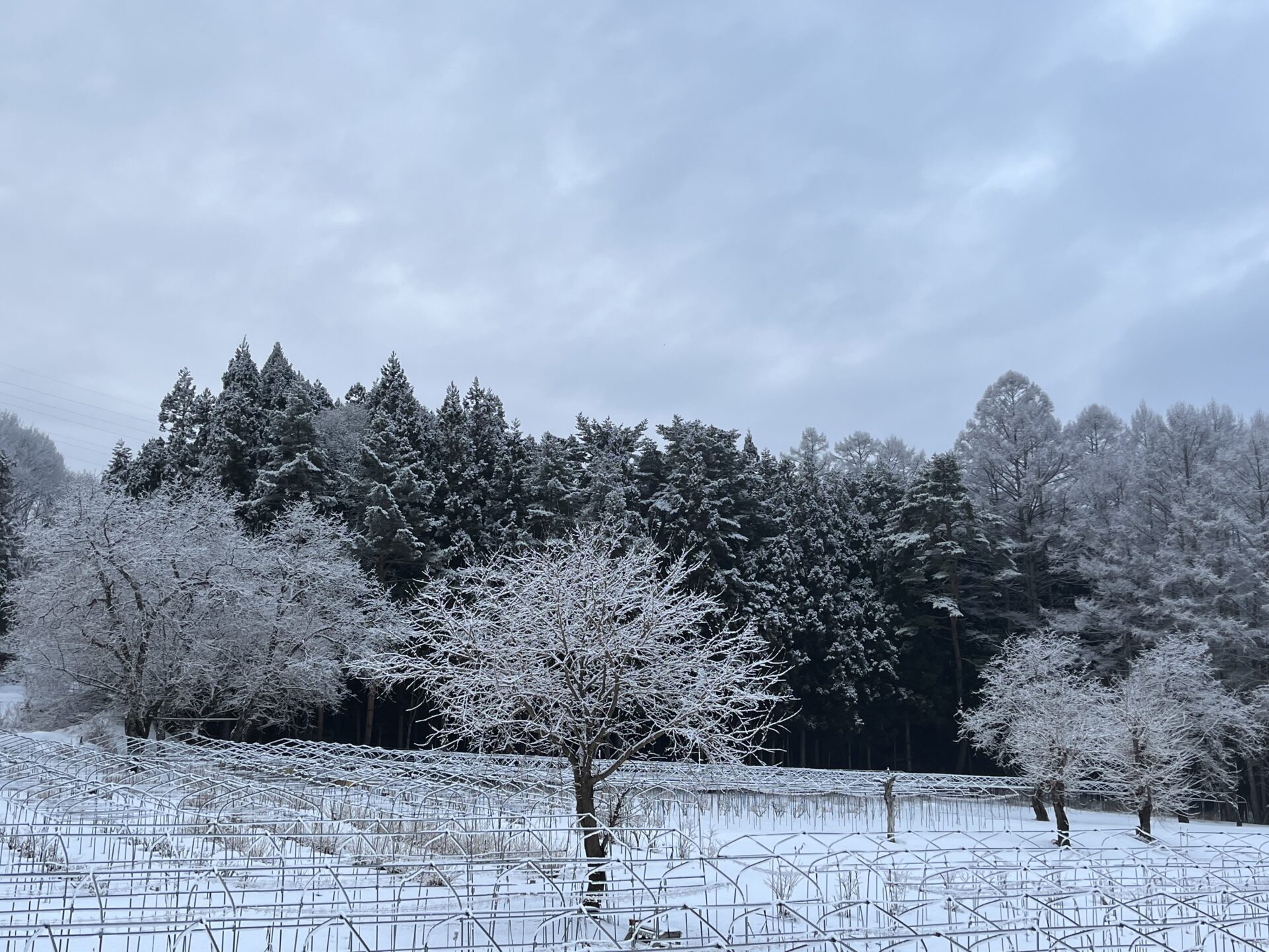今朝は昨日の景色とは変わり、一面が白い雪化粧でした。