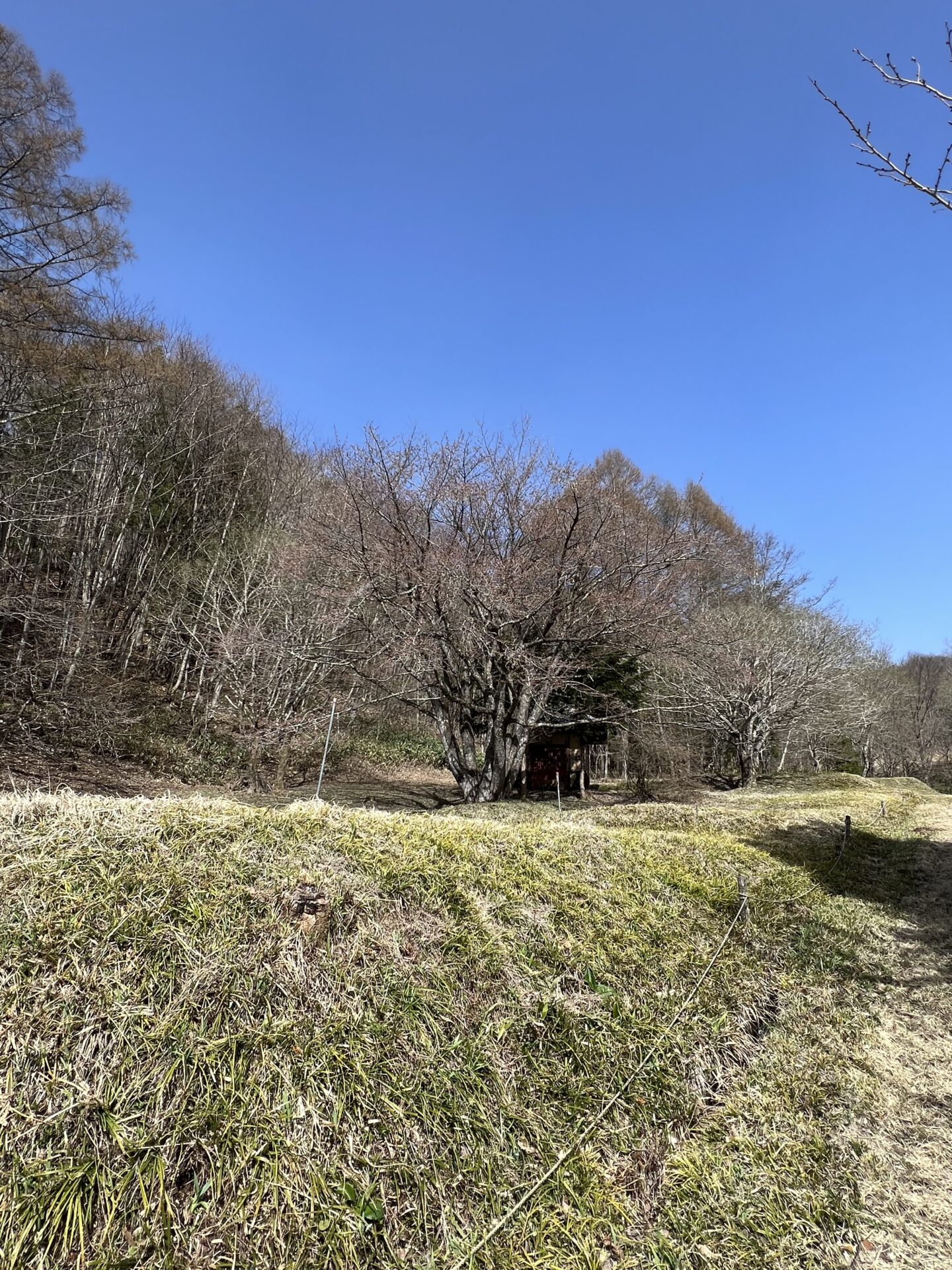 天王桜近くのオキノ桜も蕾が膨らみはじめましたが、まだ固く、全体が色づき始めました。