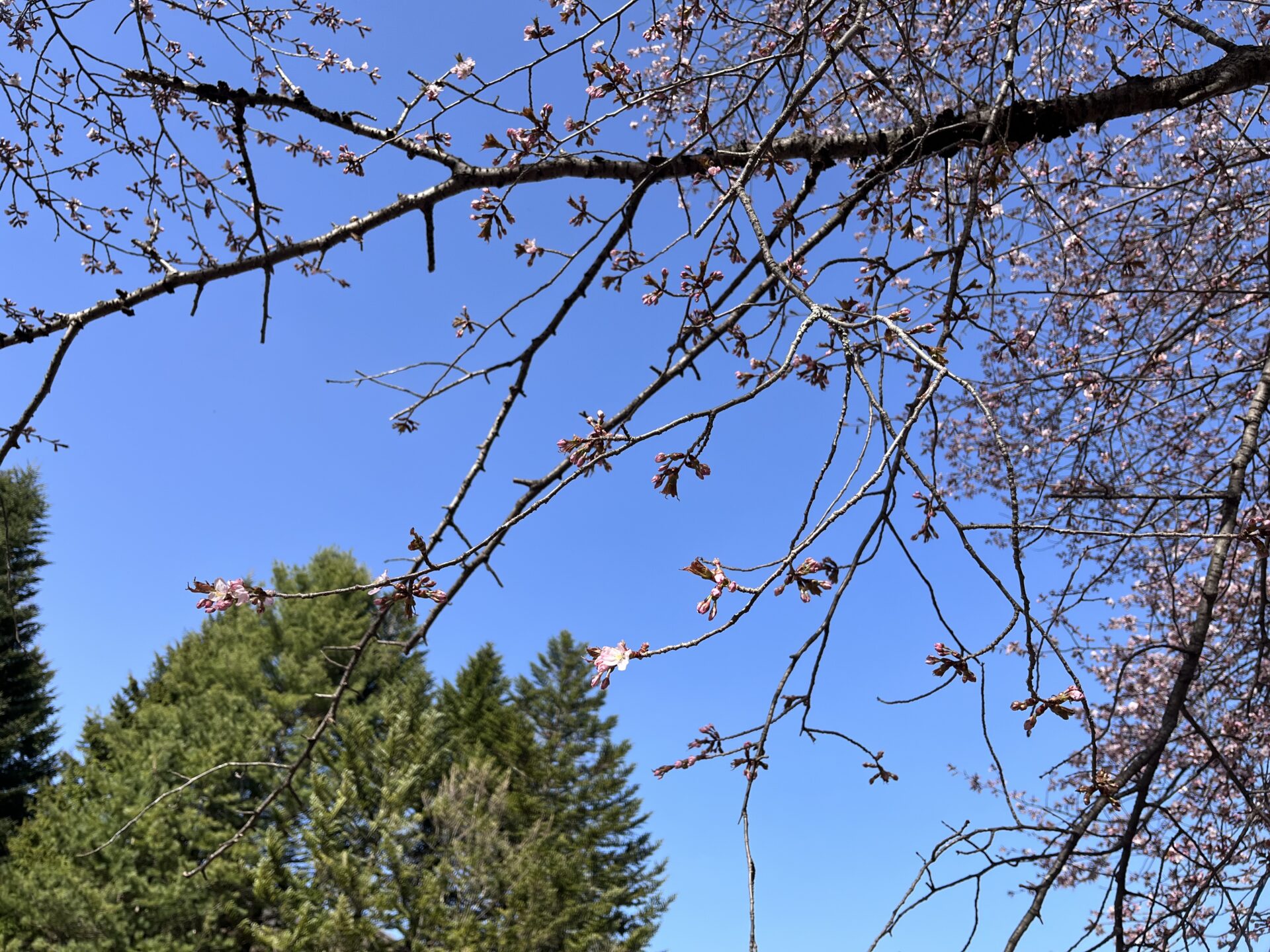 15:00現在の天王桜の様子ですが、今日のお天気で午前中と比べると北側が開花してきました。