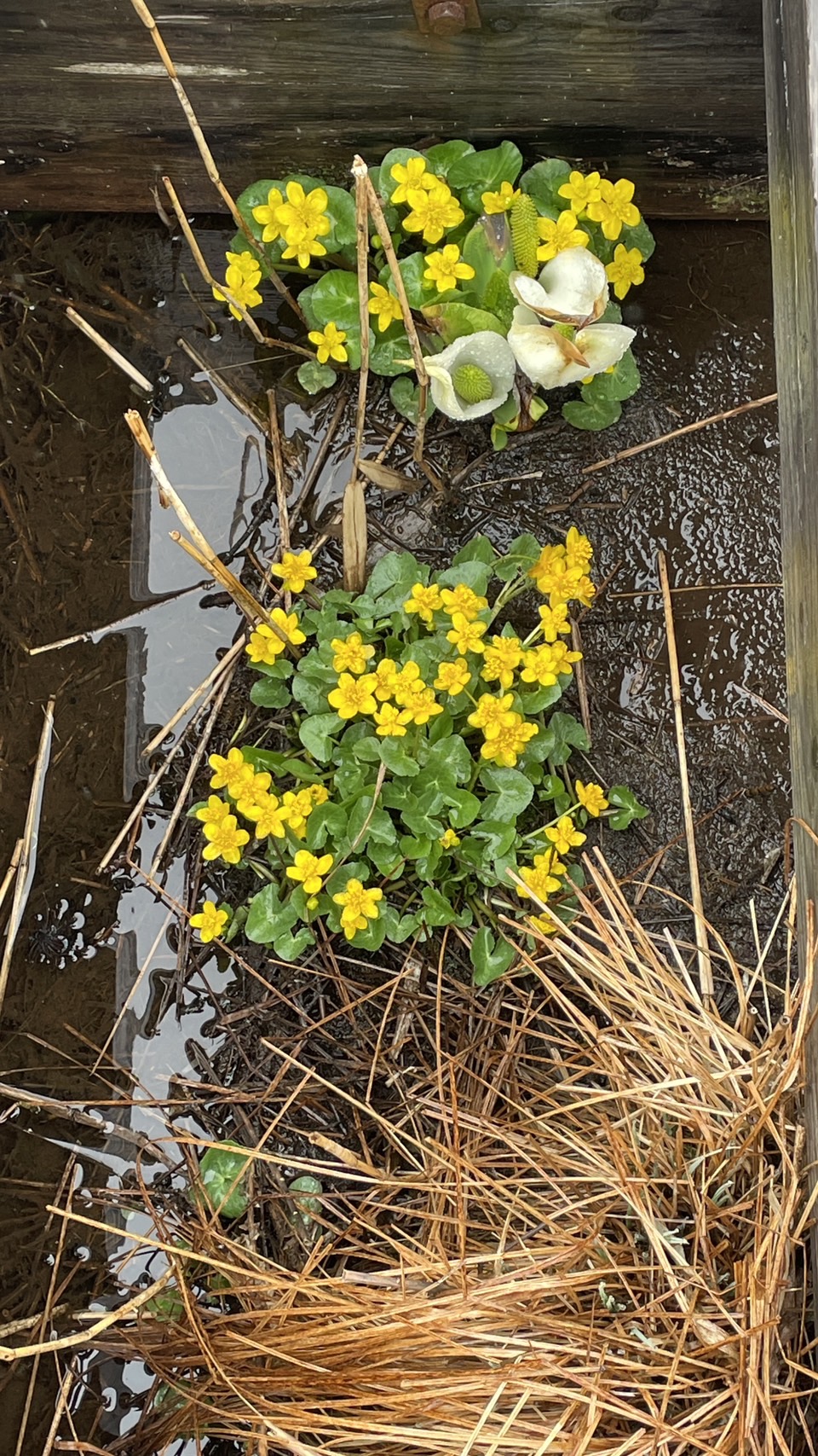 リュウキンカと水芭蕉は龍宮十字路付近で綺麗です。