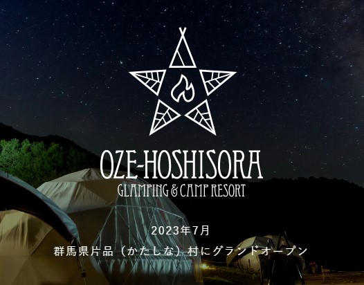 従来のフリーサイト、オートサイト、ログハウスはそのままに、新たに「グランピングエリア」を増設いたします。またリニューアルに伴い、「ほたか牧場キャンプ場」の名称を「OZE-HOSHISORA GLAMPING & CAMP Resort」へと変更し、より充実したキャンプ場を目指し生まれ変わります。