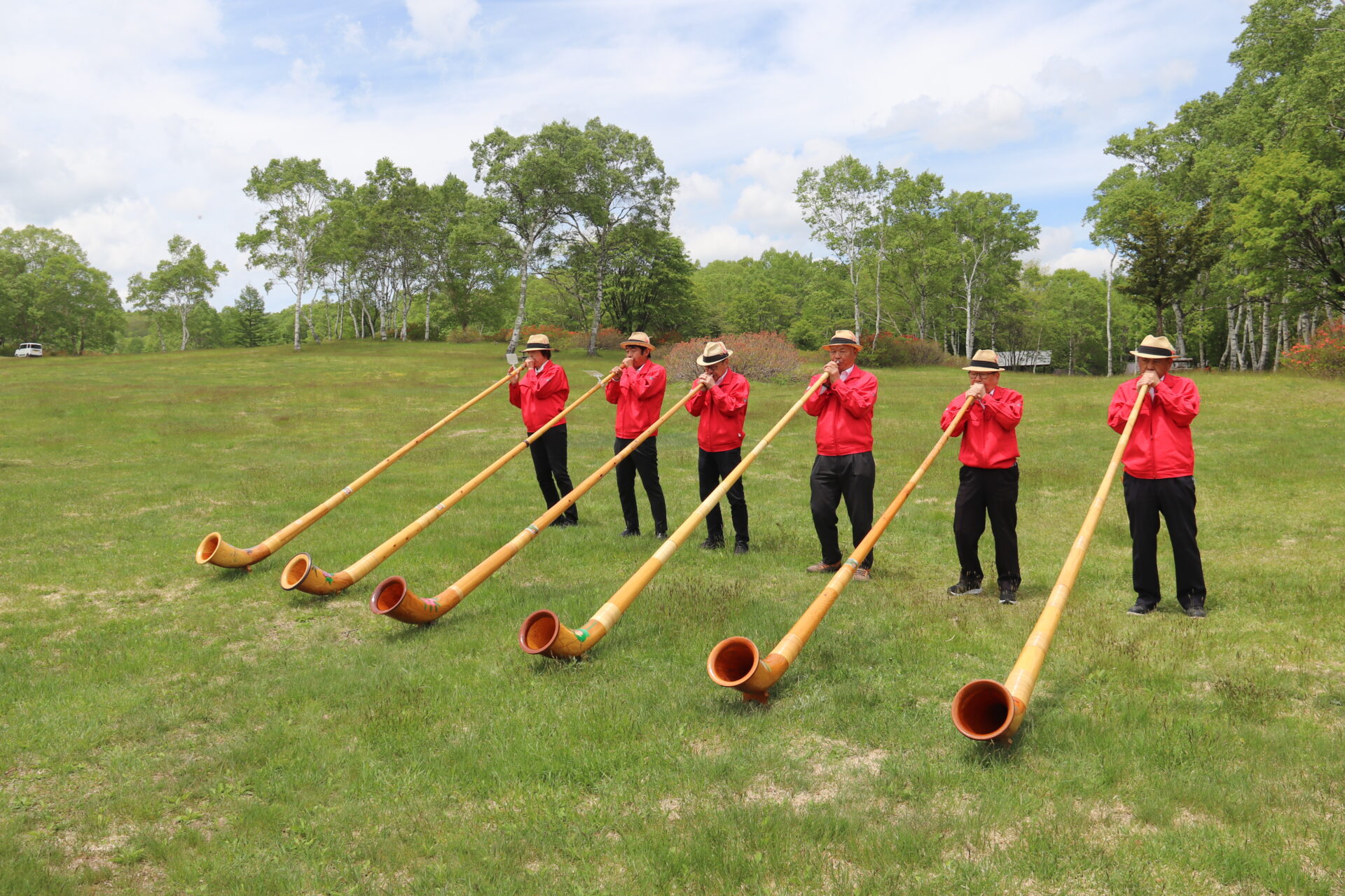テープカットのあとには地元アルプホルンクラブが演奏するなか、出席者らが歩き出し、登り初めを行いました。