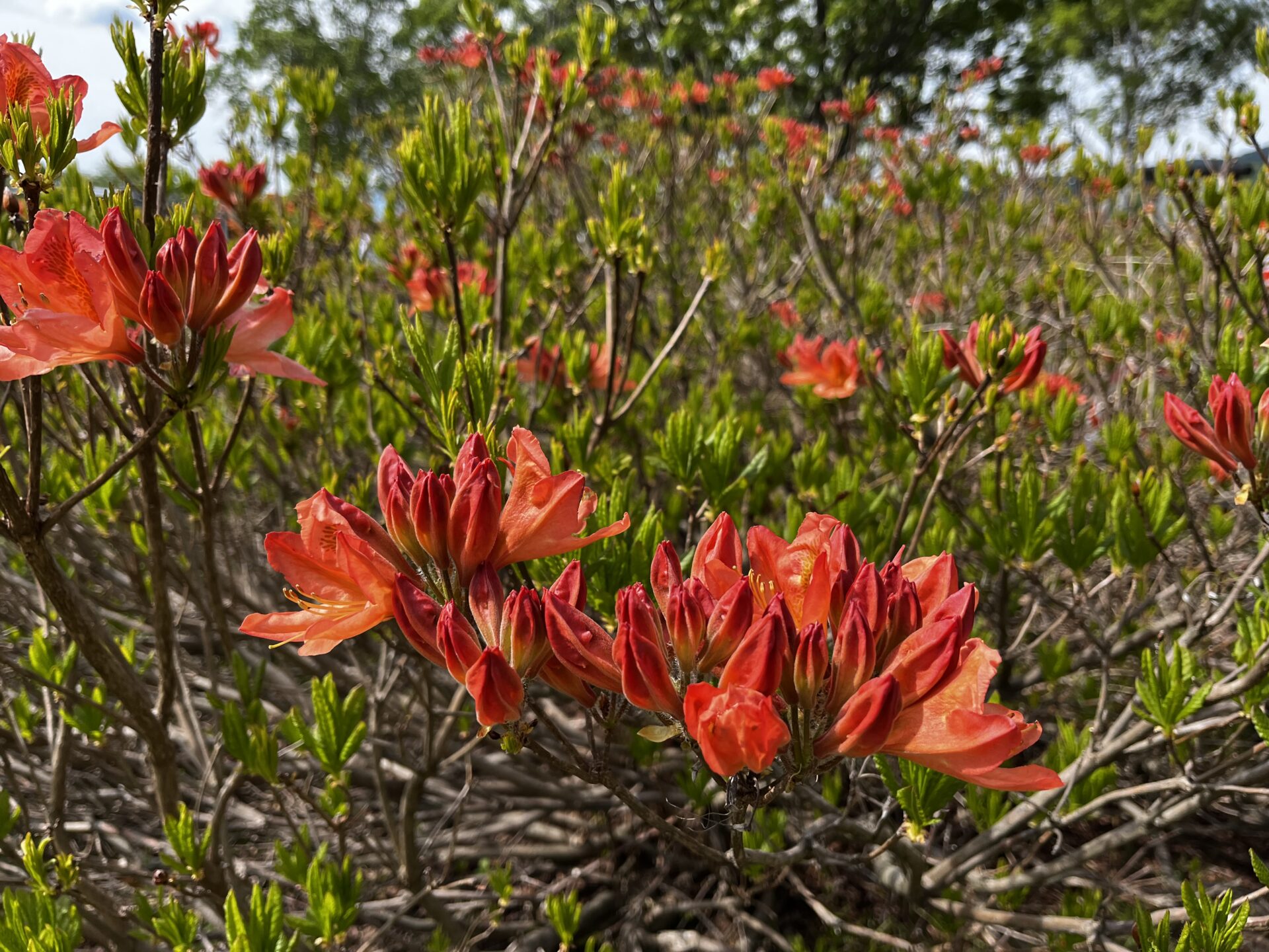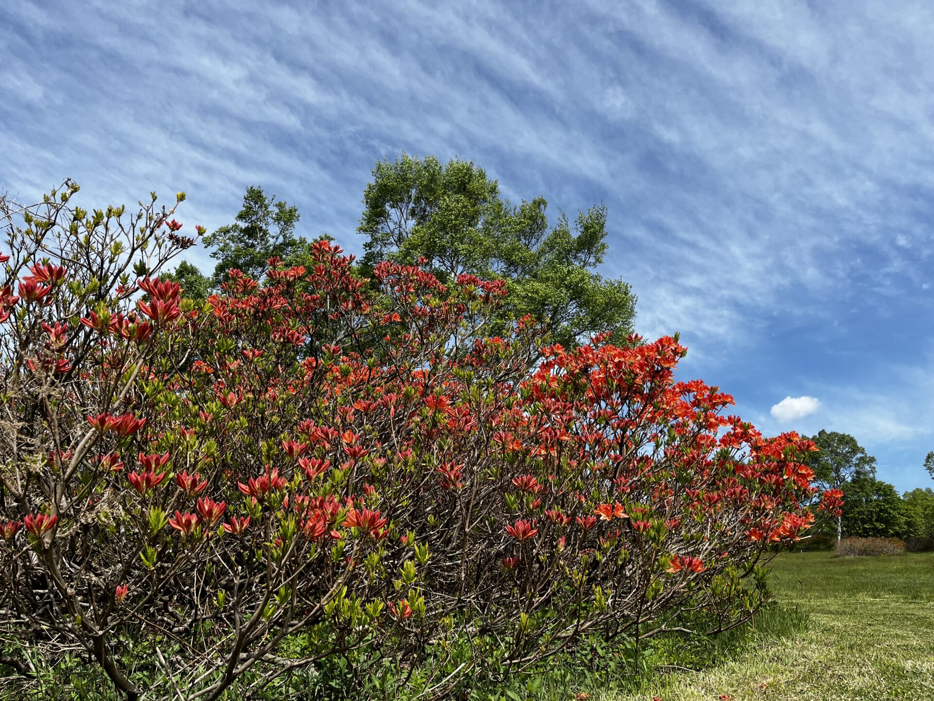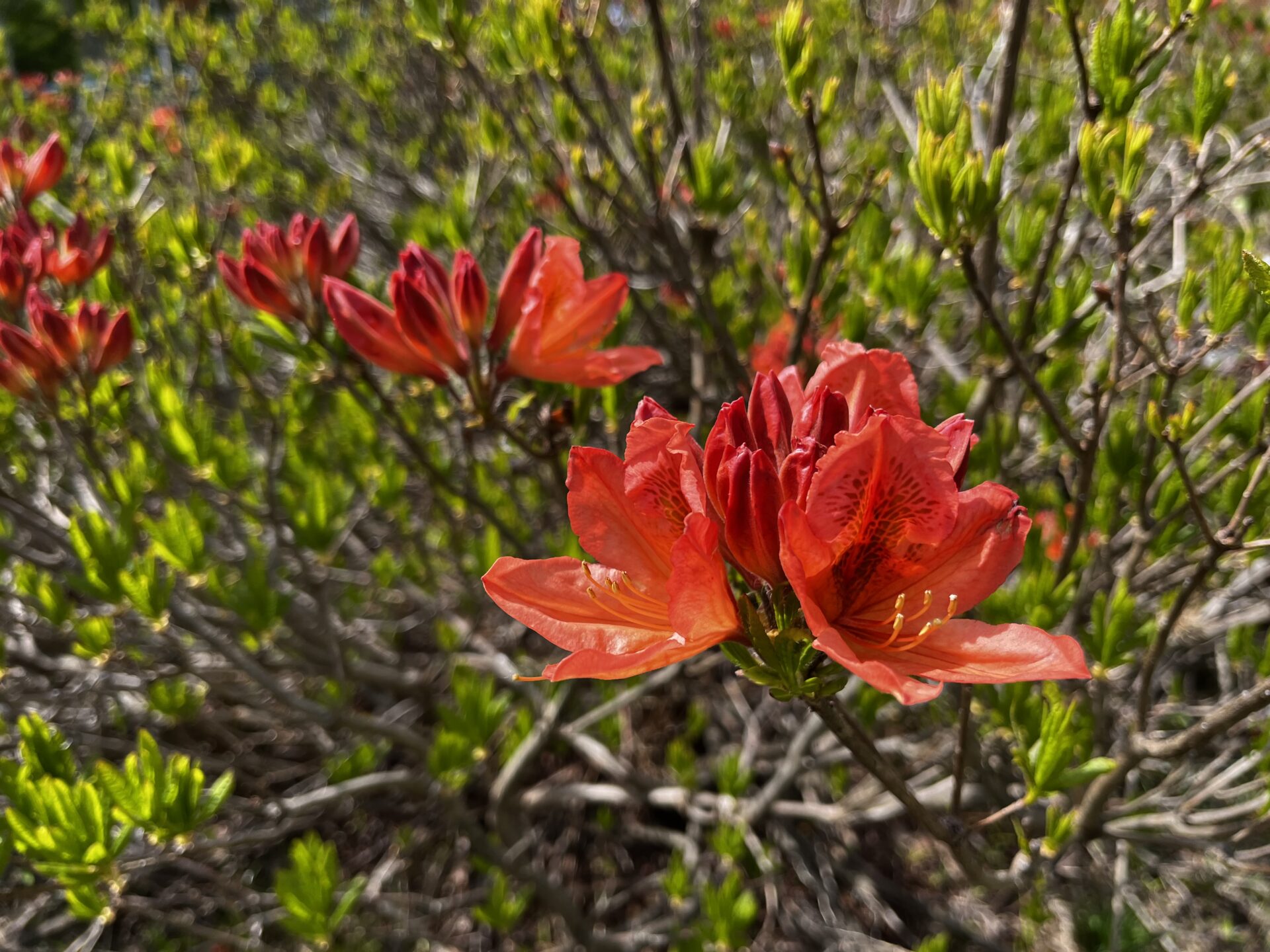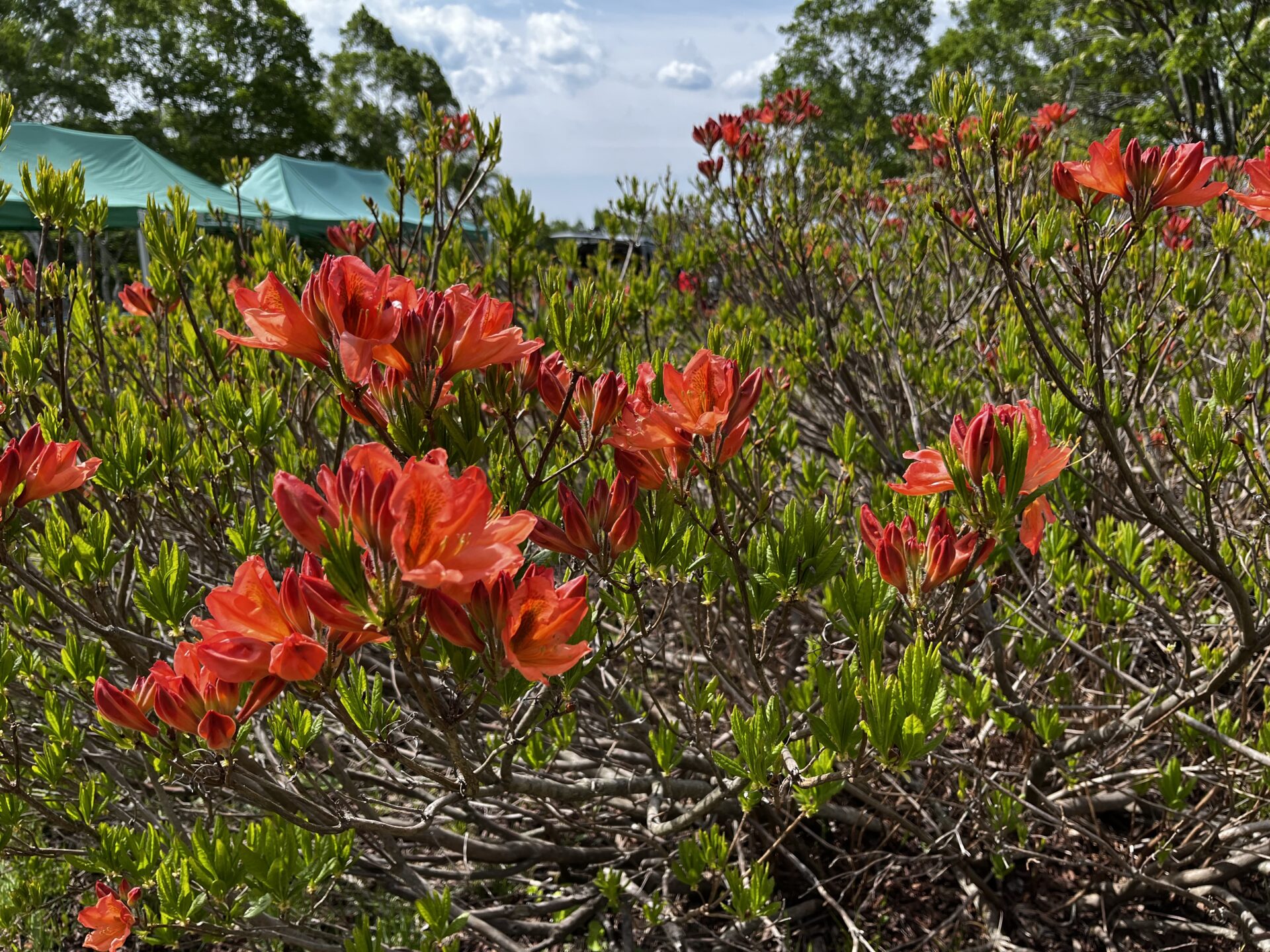 標高1,500mのほたか牧場キャンプ場内では今年は雪解けが早かった事もあり、レンゲツツジの開花も早く、現在全体的に6~7分咲きといったところかと思います。日の当たりの良い早咲きのツツジは見頃を迎えている株もあります。