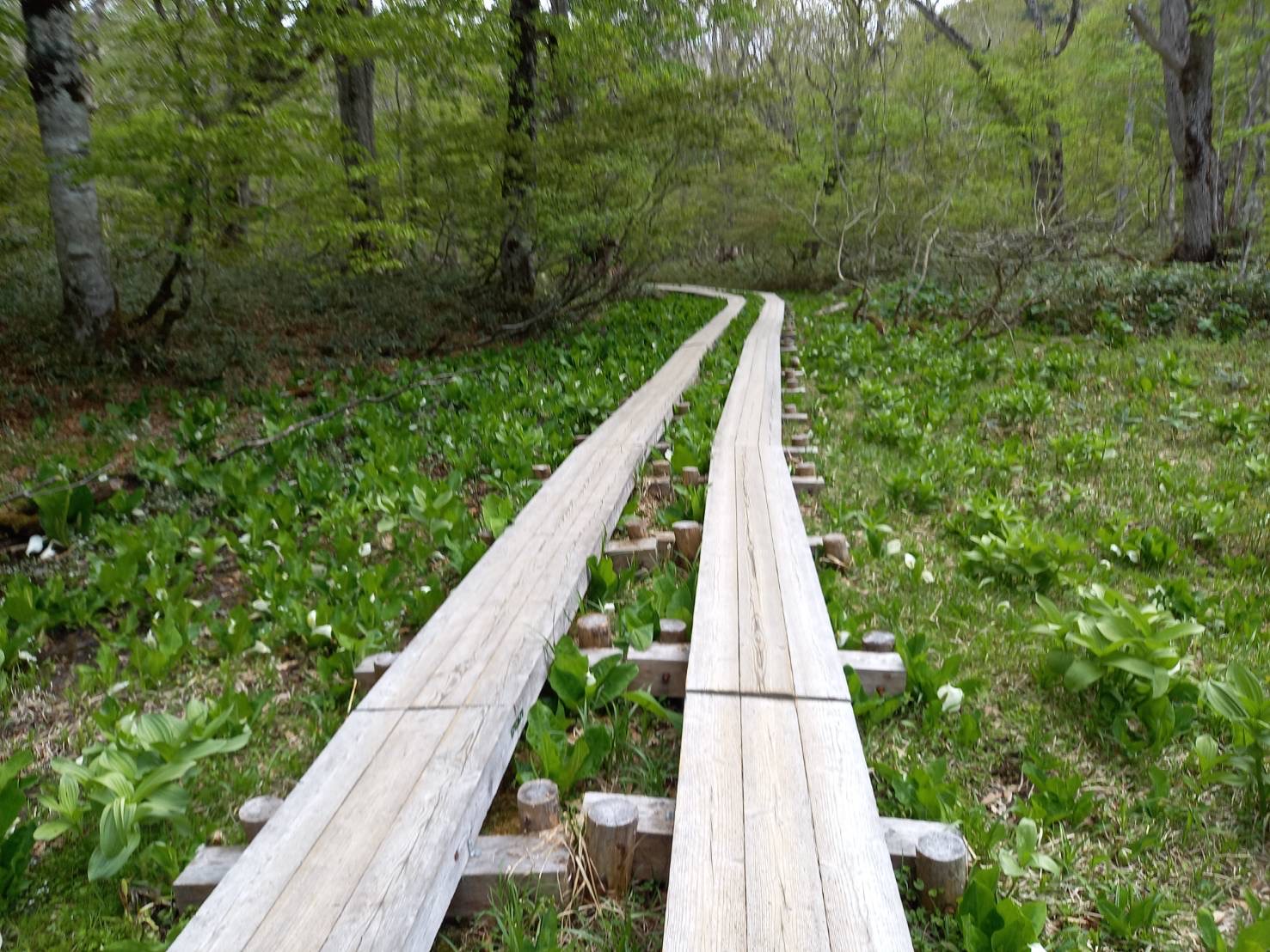 終盤を迎えつつあるミズバショウですが、山ノ鼻にある研究見本園ではまだご覧になれます。
