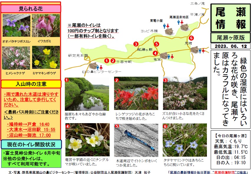 緑色の湿原にはいろいろな花が咲き、尾瀬ヶ原はカラフルになってきました!