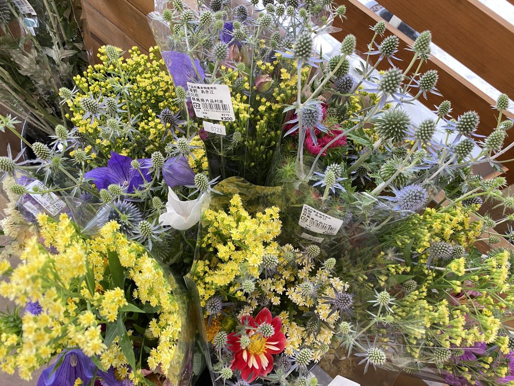 高原野菜のカラフルな色合いに負けないように、華やかな可愛い花たちも並んでいます。