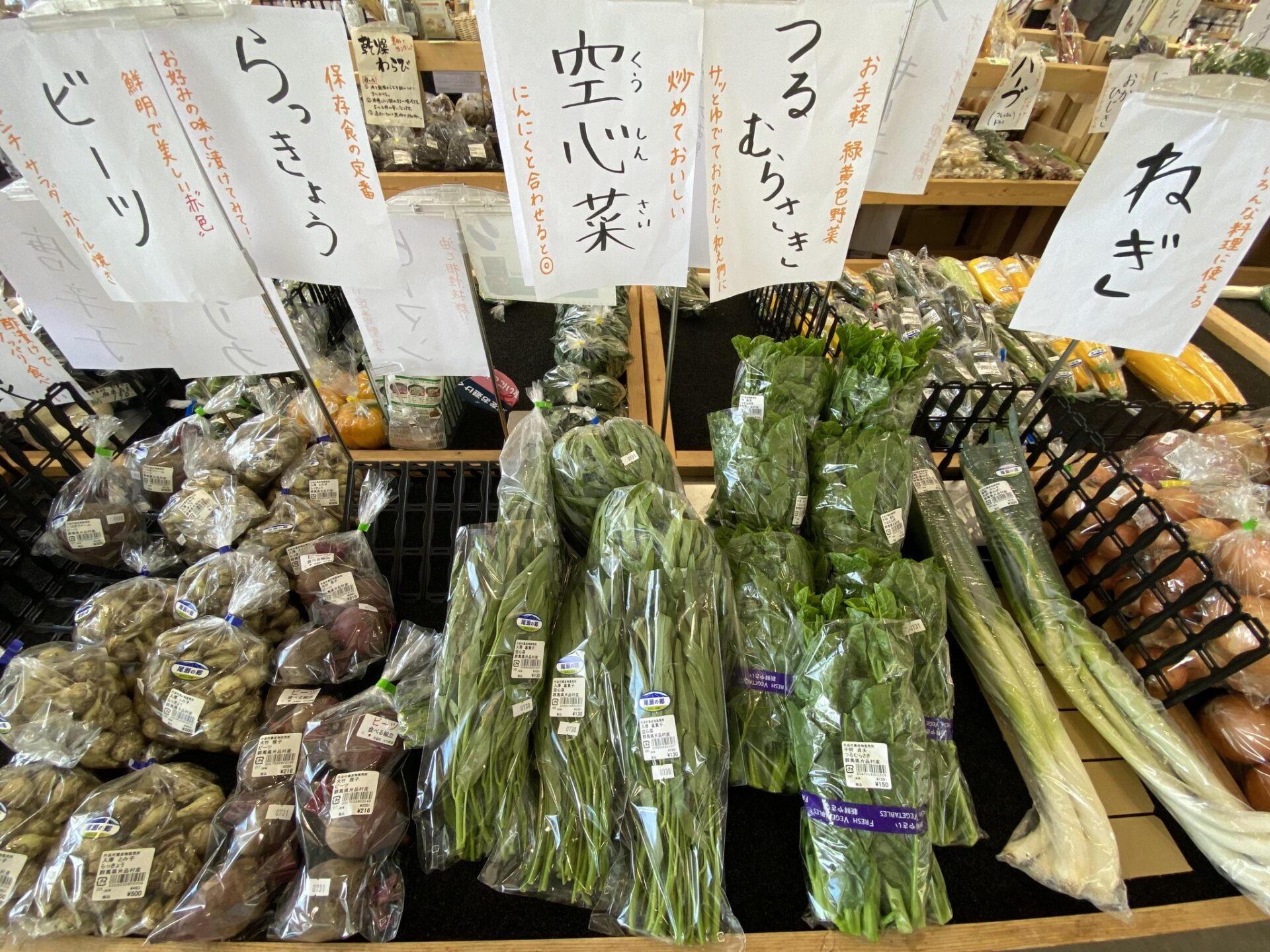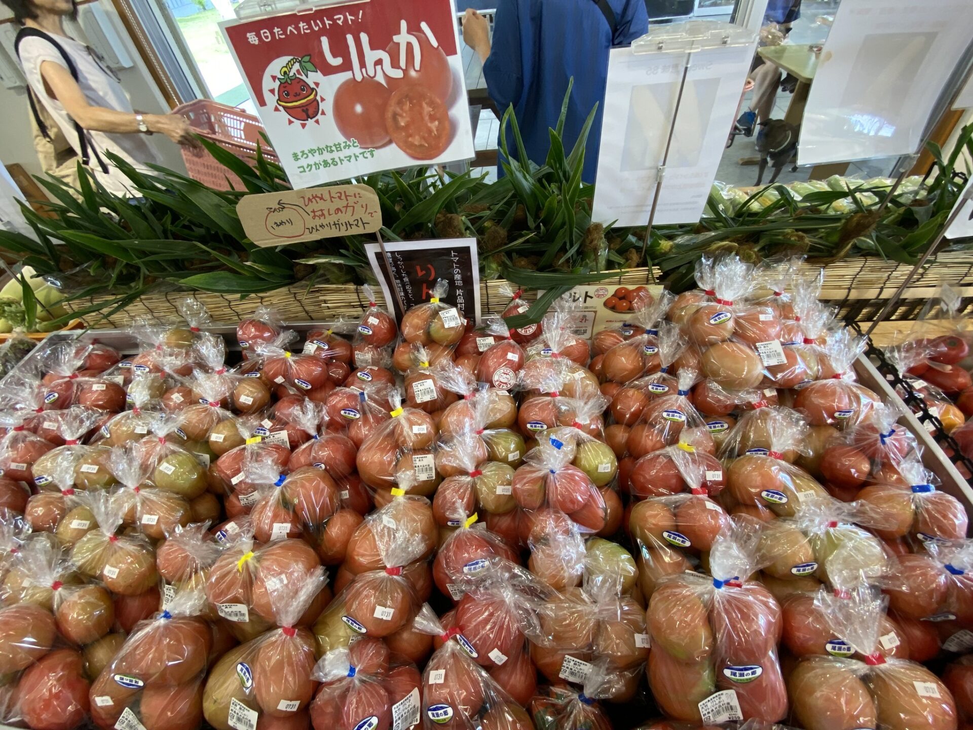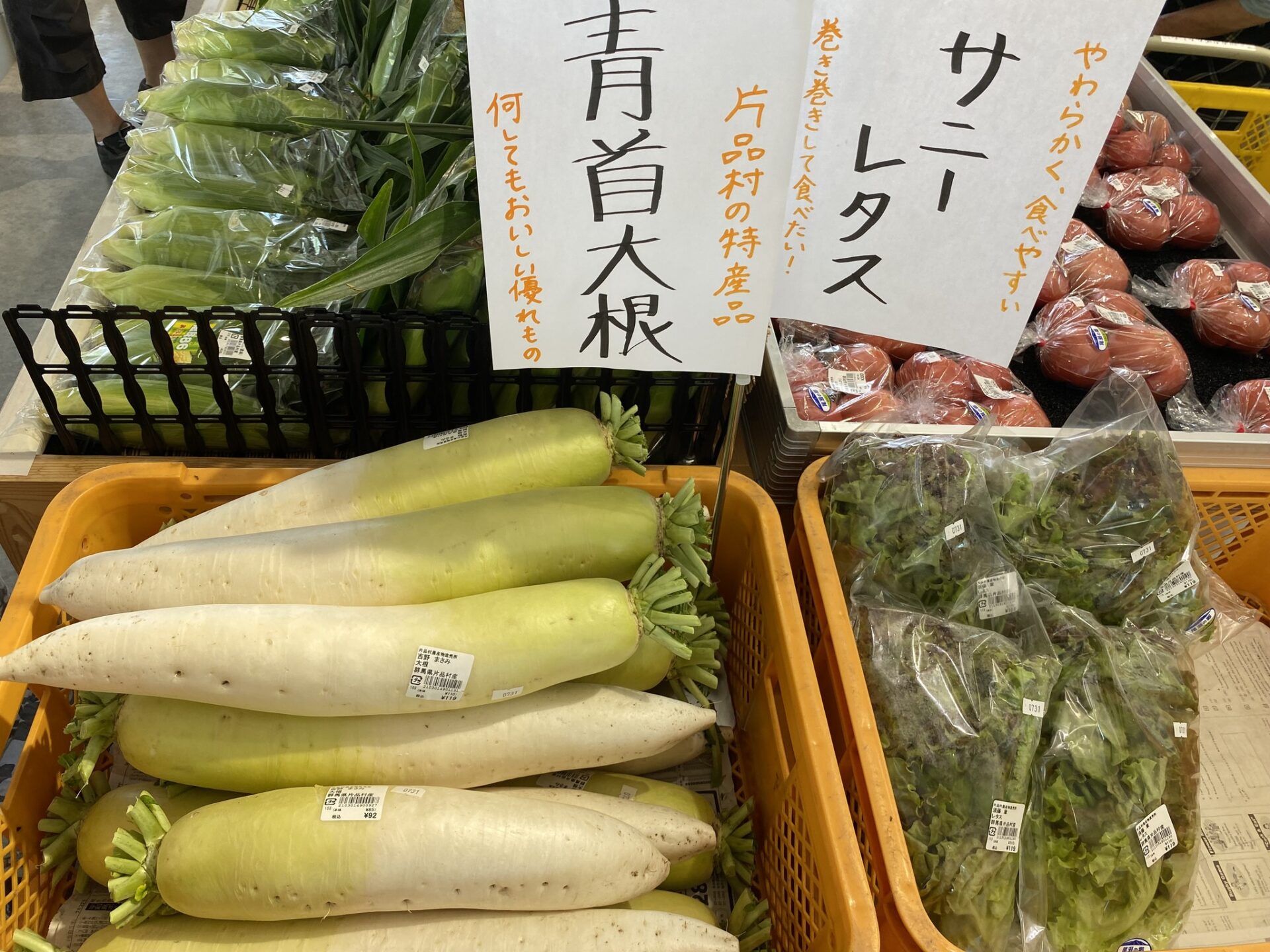 採れたて新鮮そのものの朝採りレタスやだいこん、トマトなど続々と並んでいます♬