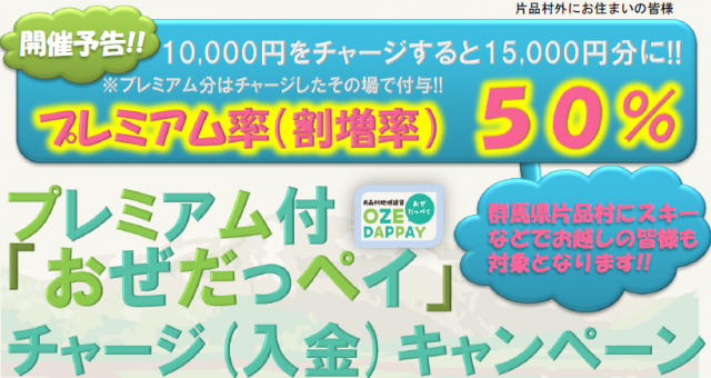 プレミアム付き「おぜだっペイ」チャージキャンペーン販売終了いたしました!