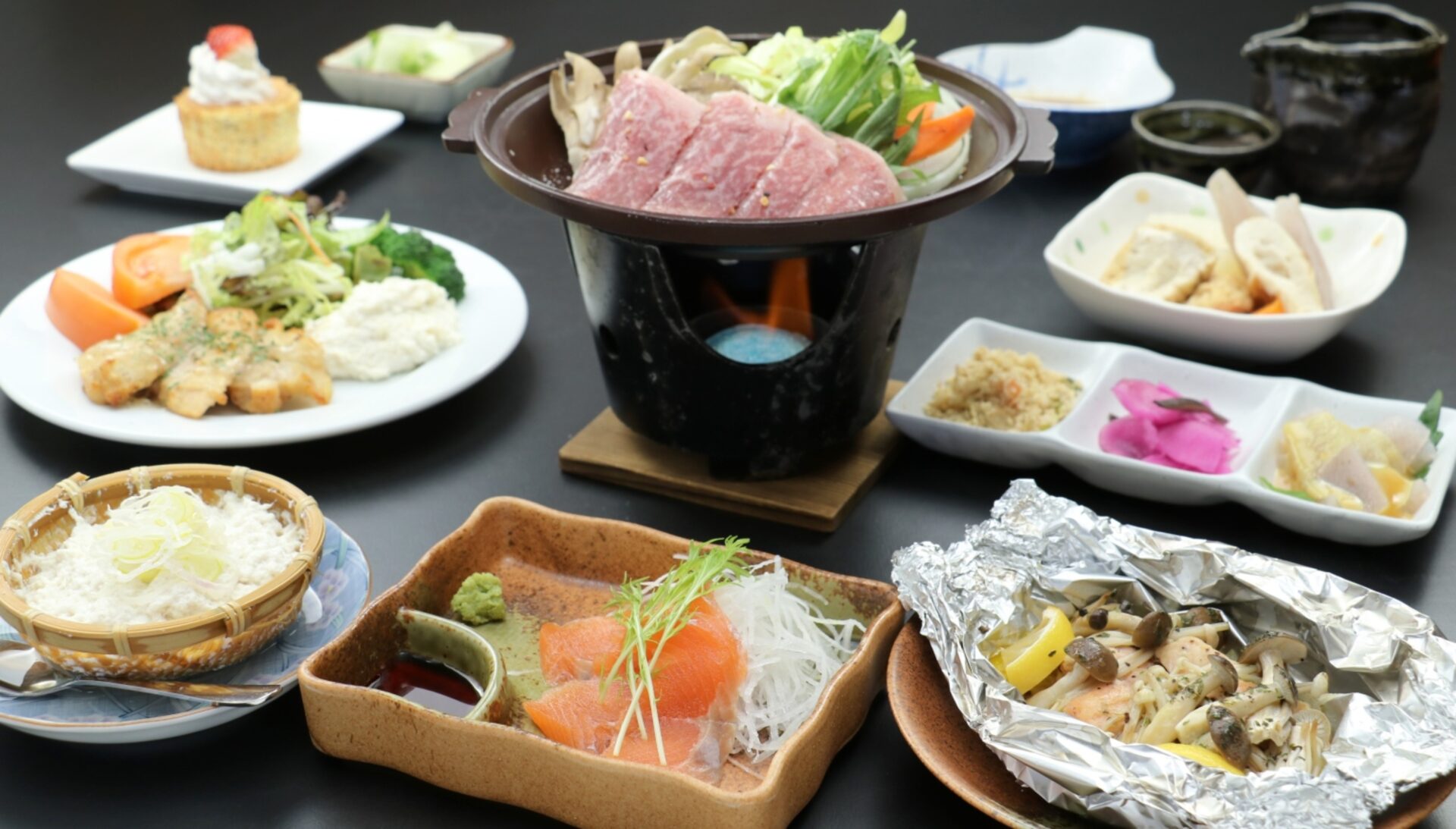 武尊ボリュームたっぷりの夕食でおもてなし。 ログハウス、囲炉裏、乾燥室あり。宴会場で宴会ができます。送迎...