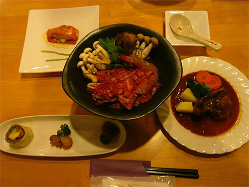 尾瀬ヤマメや鹿刺し、野菜やキノコ・地どりを使った「みぞれ鍋」「まいたけご飯」も大好評です。ご賞味あれ!...