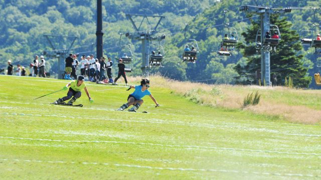 夏専用のマットを敷き詰めた全長400m 最大斜度15°のコースで楽しむスキー&スノーボード。高原の涼や...
