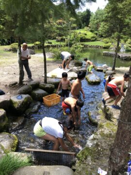 夏日本庭園風の養魚場にはニジマス、ヤマメなど約100 万匹が放流されており、魚釣りやつかみどりを楽しめ...