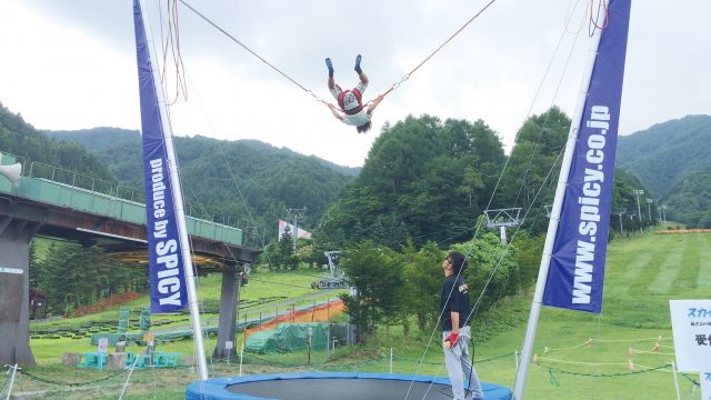 夏最大6mまでの大ジャンプが可能な、逆バンジージャンプ。日常では味わえない、浮遊感や無重力感を味わえま...