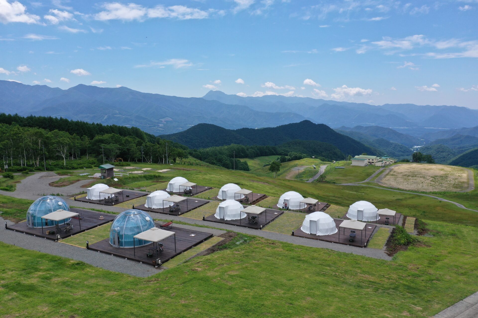 百名山の武尊山中腹に「OZE-HOSHISORA リゾート」がOPEN。標高1,500mを超える山岳地帯の山頂に位置し、目の前に広がる雄大な景色からは尾瀬かたしなの大自然を感じる事ができ、場内で一番見晴らしの良い場所にあるグランピングエリアは、ドームテント室内から雄大な空と満点の星を眺めることが出来ます。テントはもちろん、ログハウス等での宿泊が可能。また場内レストランで食べる事ができるジンギスカンやBBQ 料理、キャンドル作りやクラフト等の体験教室も楽しめます。