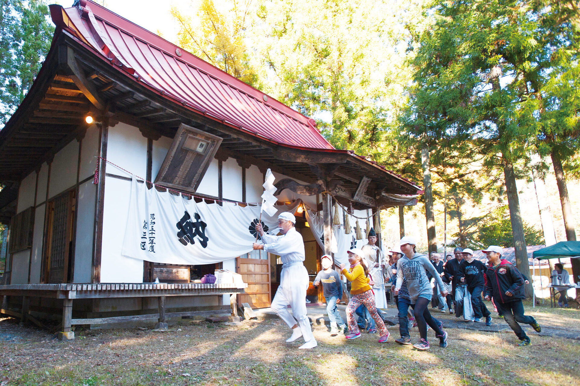 秋花咲武尊(ほたか)神社は、郡内各所のある武尊神社の本社です。その昔武尊山の岩屋に白い毛の大猿が住みつ...