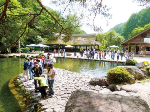 子供から大人までどなたでも手軽に魚釣りやつかみどりが楽しめ、釣った魚をすぐに塩焼きにしてお召し上がりいただけます。